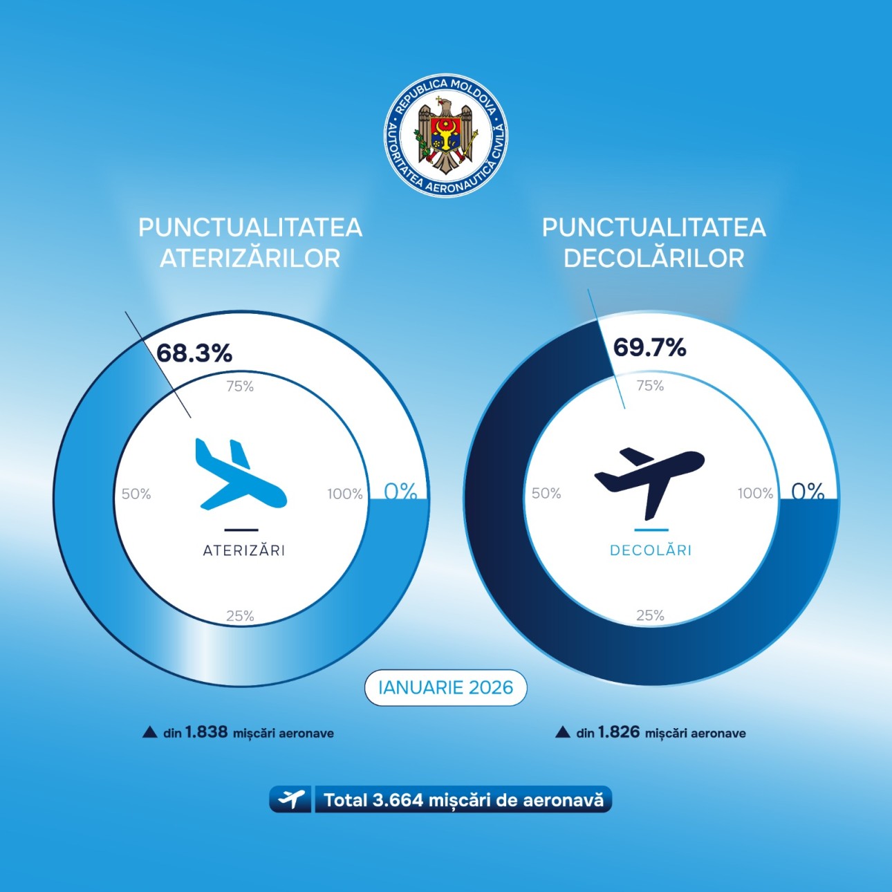 Aterizări la timp – 68,3% din 1.838 mișcări